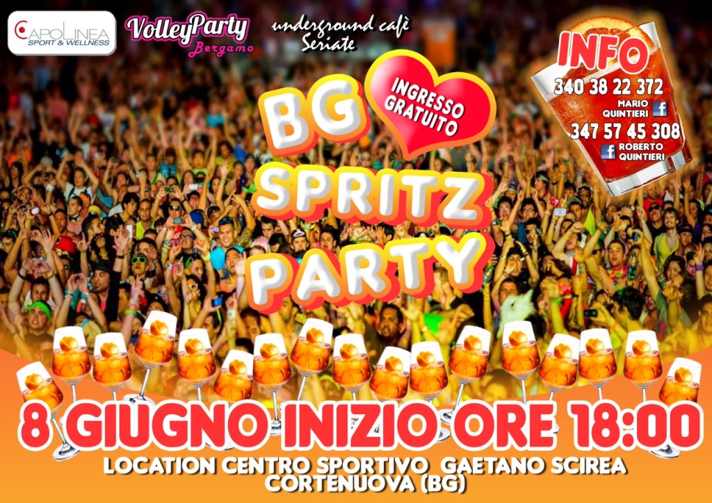 VOLLEY PARTY BERGAMO e CAPOLINEA SPORT&WELLNESS hanno il piacere di invitarvi al primo evento estivo di quest’estate 2013…e lo facciamo proponendovi una festa imperdibile: SPRTIZ PARTY del torneo Bgreen!!!